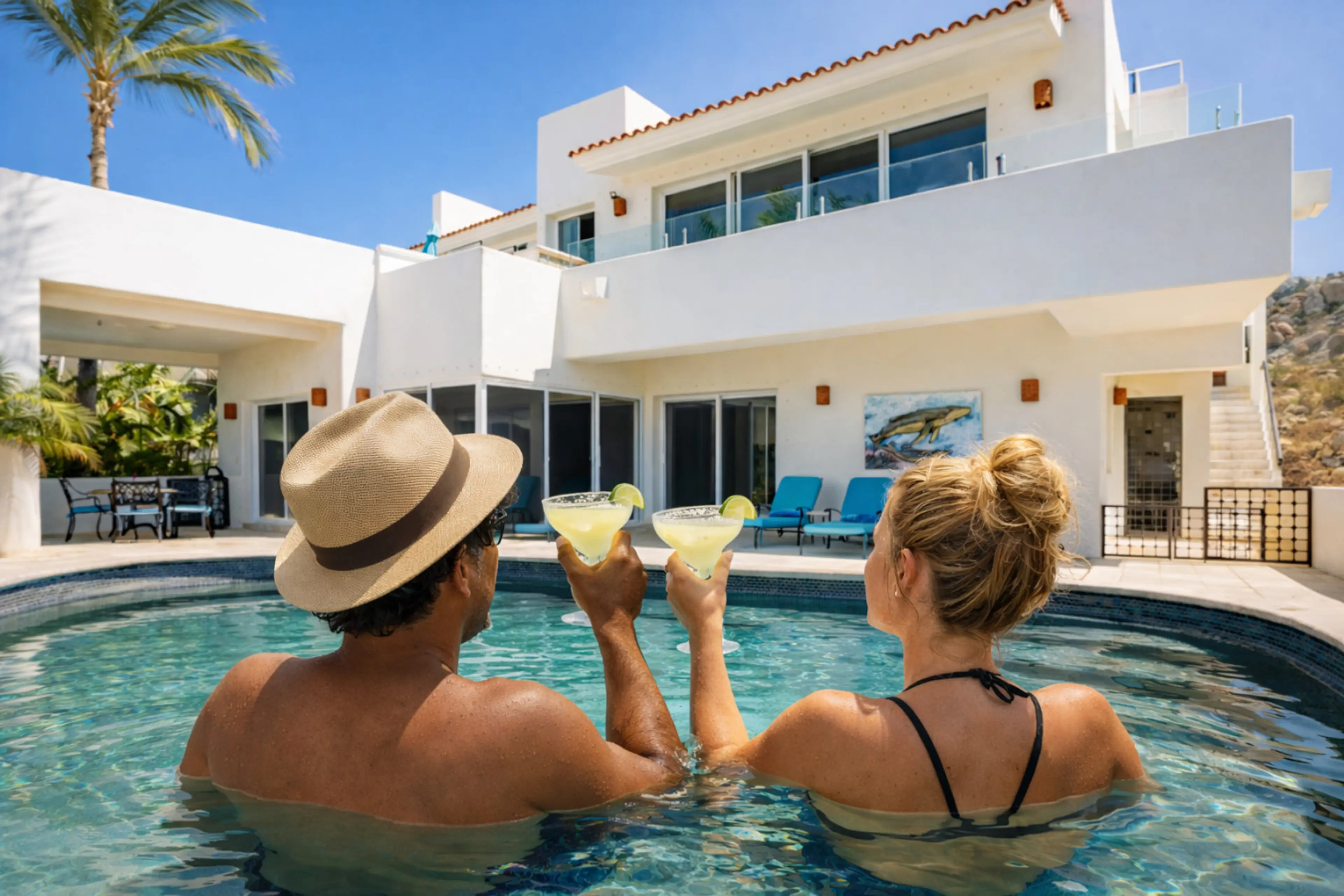 Relax, explore, and feel at home in this colorful private villa inside Pedregal, Cabo’s most exclusive gated community with 24/7 security. This stylish home has 4 bedroom suites. Enjoy ocean, marina, pool, beach and mountain views from your private terrace, unwind by the saltwater pool, or dine outd...